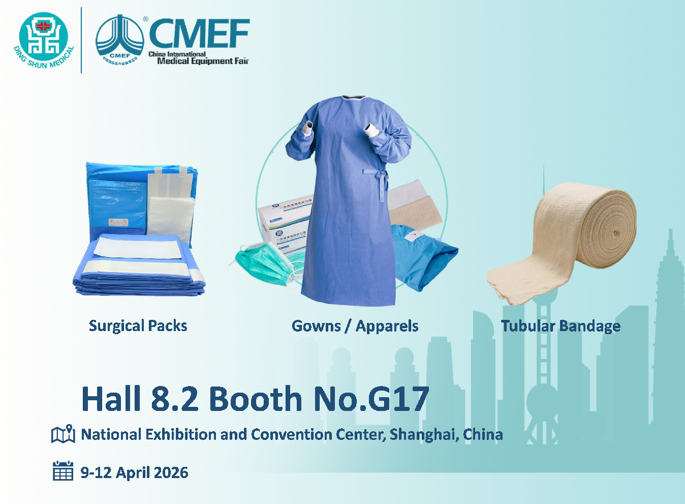 The company will showcase its Surgical Packs, Gowns/Apparels, and Tubular Bandage product lines at Hall 8.2, Booth No. G17. The event takes place at the National Exhibition and Convention Center in Shanghai.